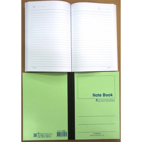 25K 綠色平裝筆記本100入-產地台灣,尺寸為150x210mm,另有80.60.40