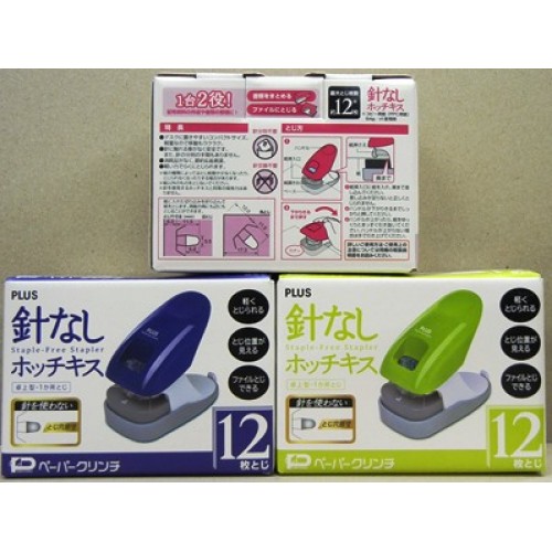 PLUS SL-112A 12枚無針釘書機-日本品牌,產地越南,一次可訂12張,裝訂不受限,內附尺規,依尺標打孔後,可收入二孔資料夾,方便資料歸檔,有藍.綠及粉三種顏色,隨機出貨,圖片會有色差,顏色以實物為準。